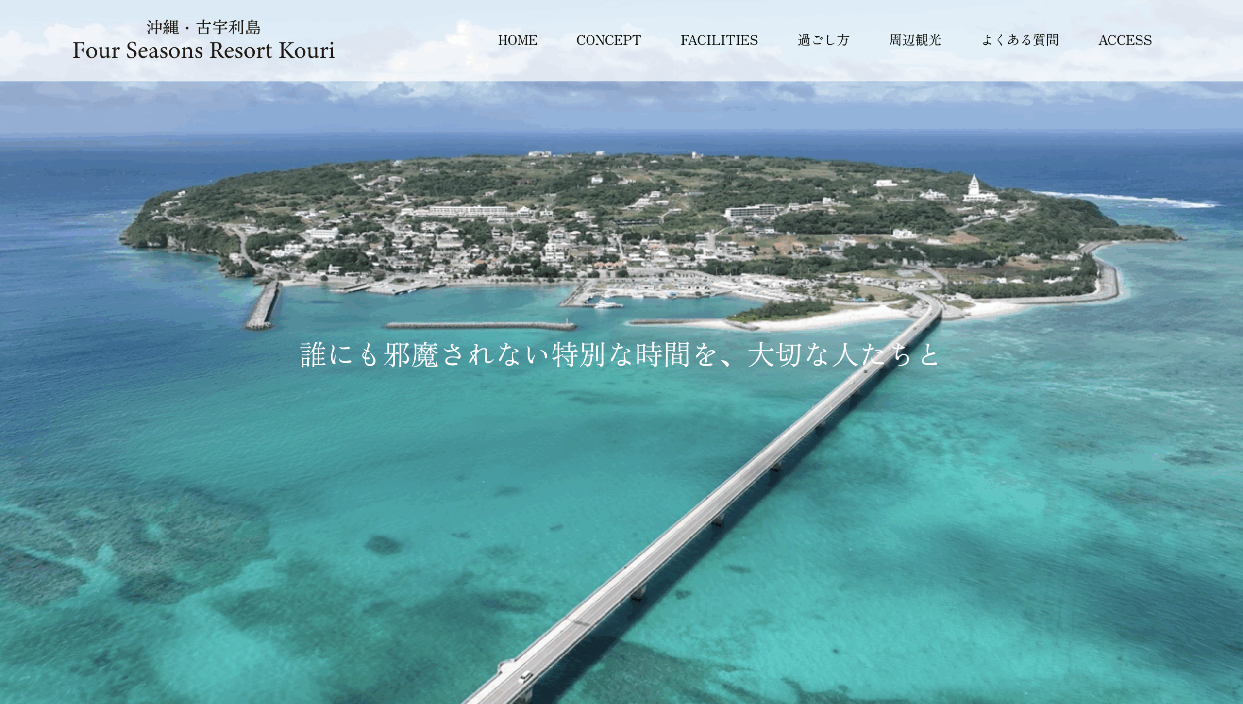 2025.11.25 公式WEB予約サイトを開設しました。 Four Seasons Resort Kouri公式WEB予約サイトをオープンしました。 本サイトよりご予約いただいた場合は2時間のレイトチェックアウトをサービスいたします。